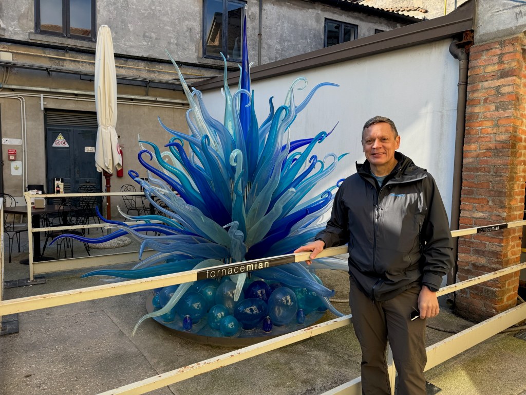 Deb quickly figured out the vaporetto system and we were off to Murano island. While wondering Murano we stumbled on the Wave Murano Glass Factory. They invite you into their studio to watch the artisans at work for free. It was fun to watch about eight artisans bustling around the furnaces creating cool glass art. We had been looking to purchase some Murano wine glasses, so we bought four wine glasses and a Christmas ornament from their small artisan store. It was nice to know we bought something unique and made at this small shop versus the abundance tourist shops around Venice.