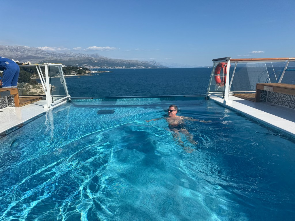 Viking always is top notch. The ship only had about 450 rooms, so no more than 900 passengers. We met many friendly couples on-board which made for wonderful dinners. We also took advantage of the sun deck, pool, spa and hot tubs which were rarely used.