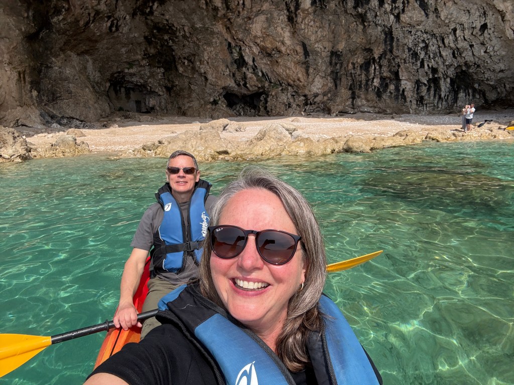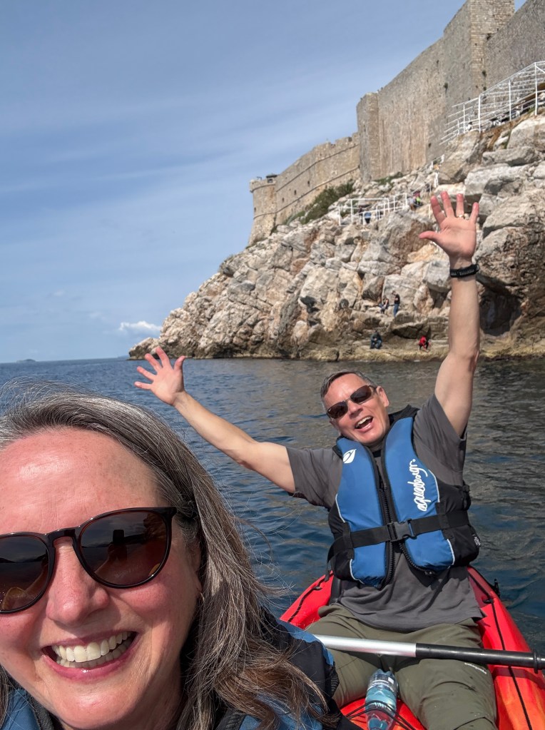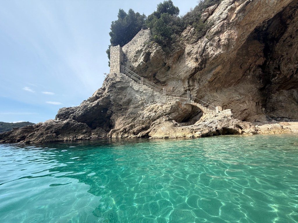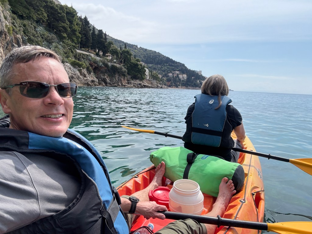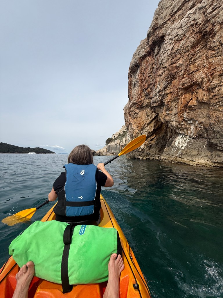 On a whim, we rented a kayak for 40 euros and explored the coastline. It was amazing! One unexpected highlight was kayaking by the former Belvedere Hotel, now in ruins after shelling from the Serbian forces in 1991.