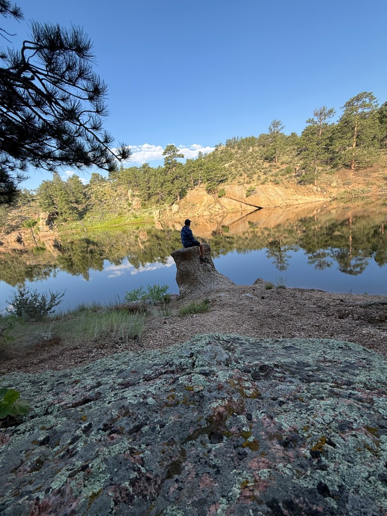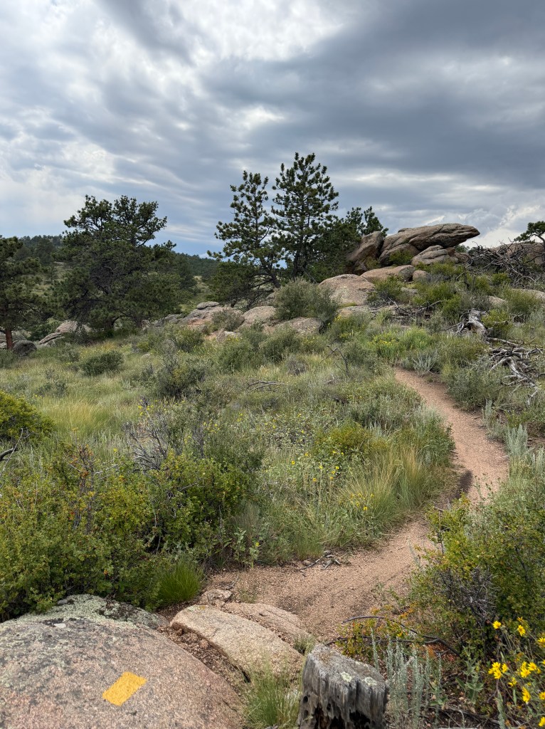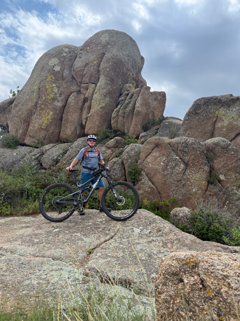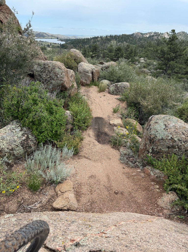 Arrived at Curt Dowdy State Park just outside of Cheyenne on Thursday where I would camp for the next two nights. What an amazing state park, chock full of great mountain biking trails along two large reservoirs. I did a short 4-mile ride from my campsite at Crystal Lake Reservoir, but a quickly forming thunderstorm sent me back to camp. Once the storm passed I drove up to the main trailheads and biked Stone Temple with offshoots into the Curt Gowdy Gold Trails, well-built and challenging downhill flows over granite boulders. I must say, I toyed at the edge of what I was comfortable riding on my own … but it was absolutely thrilling!
