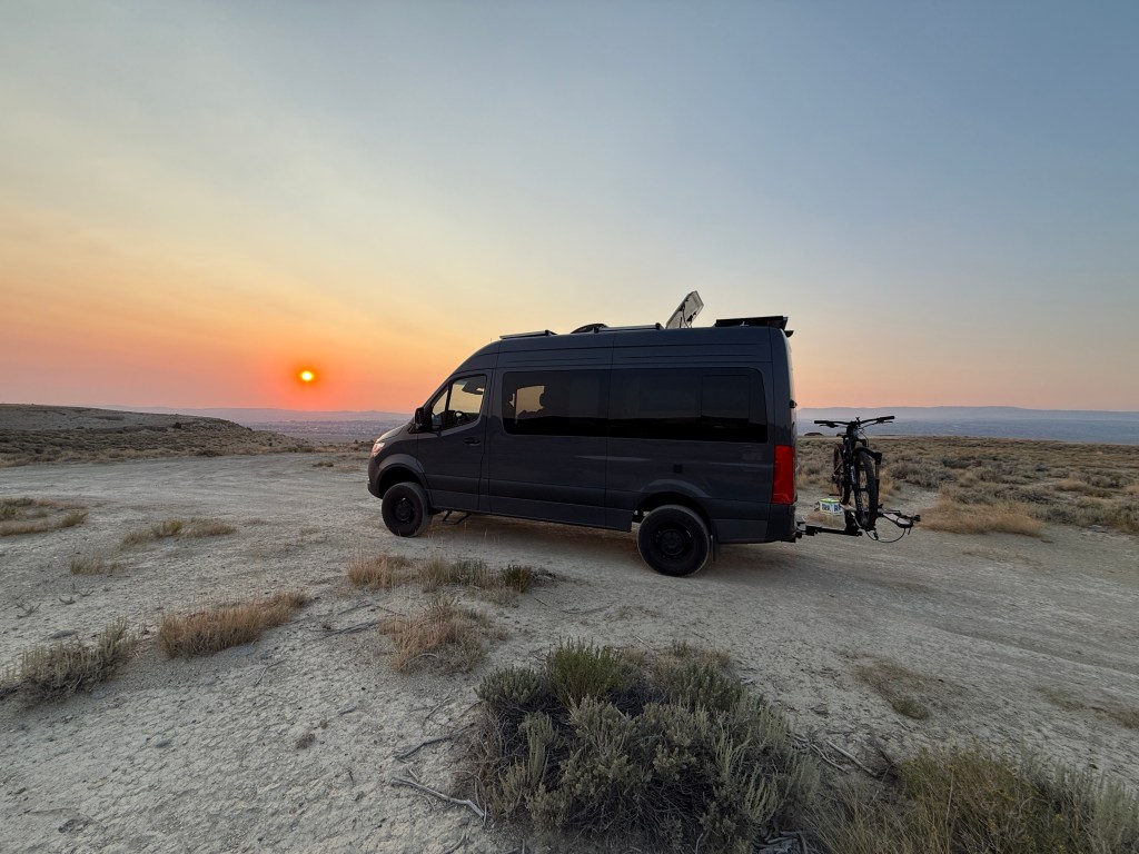 Unfortunately when I got back to the van I found a screw embedded in my rear tire. I spent a couple exhausted hours putting my spare tire on, so I did not make it to my planned HarvestHost stop in Billings. I did make it to Cody where I hit up BLM lands just east of town off Greybill highway. It provided a much needed resting spot.