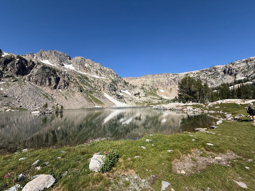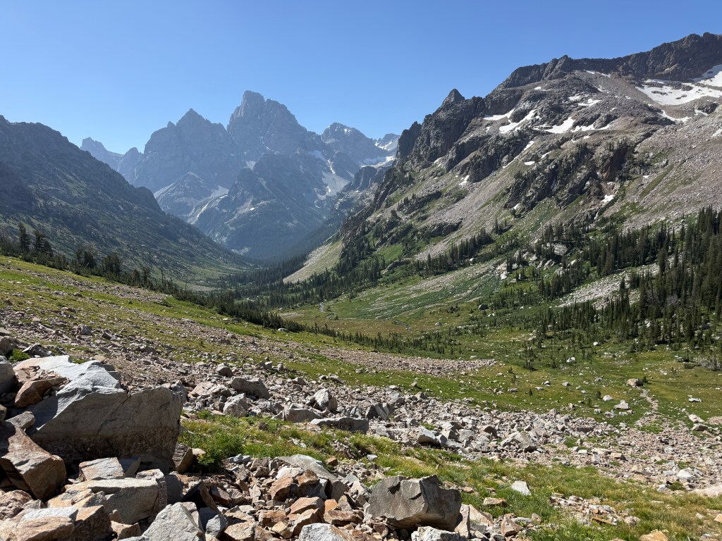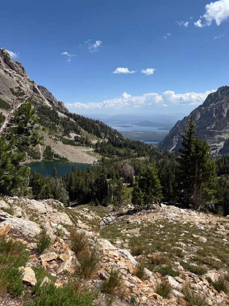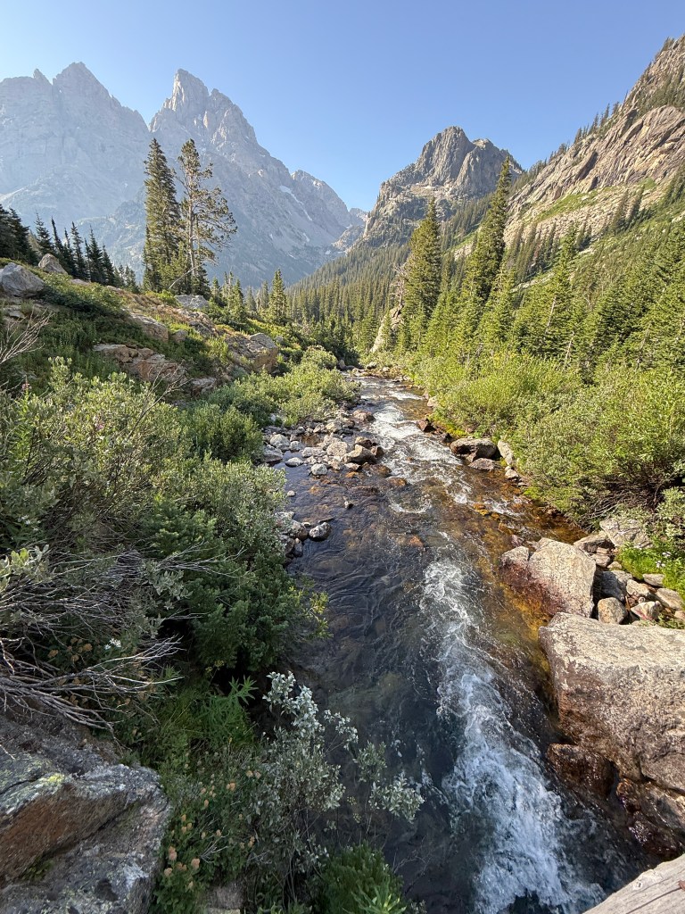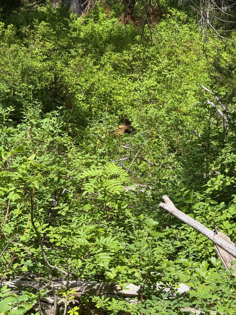 Got up early to beat the crowds into Grand Tetons National Park. Took the first boat shuttle from Jenny Lake to hike Cascade Canyon. I ran into Matt from Florida and we convinced each other to add Paintbrush Canyon for a 20-mile loop. We even knocked out a few miles of trail running at the end. Every turn in the trail was an incredible view. About 16 miles in we finally saw a bear. He (or she) hung out about 20 yards off the trail happily munching on a berry bush.