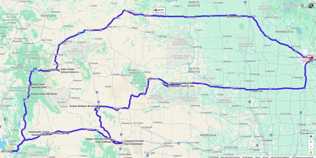 My daughter (Micaela) and her fiancee (David) wanted some help moving from their apartment in Salt Lake City to a larger townhome. I took this opportunity to load up Bessie for a solo trip and do some long-desired mountain biking in Wyoming and hiking in the Grand Tetons. In total this was a 13-day trip (including 4 days in Salt Lake City) and 3517 miles.